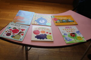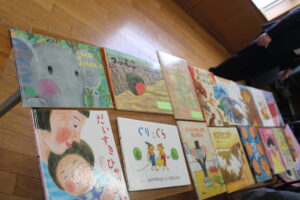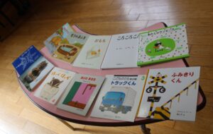 ↓おすすめの絵本も沢山持ってきてくださり、最後は「どうぞ前にきて絵本見て下さい」とお母さん方を呼んで、みなさんとお話しをされていました。