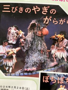 コロナ過によりしばらくお休みしていましたが、長年お世話になっている人形劇団プークさんによる「三びきのやぎのがらがらどん」と「ぼちぼちいこか」の2本立でした。