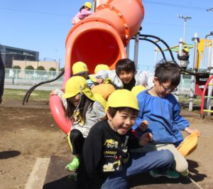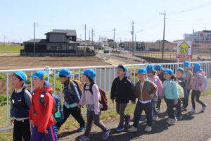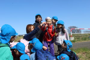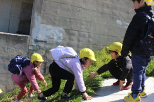北風の強い1日でしたが、小さい組の頃から慣れ親しんだ散歩道を元気に歩いてきました。