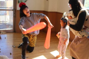 隠れたり、おに役を一緒にやってくれたり、子どもたちも「もういっかい!!」と何度もリクエストしてくれ