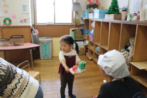 ふれあいあそびをして、”あわてんぼうのサンタクロース”をうたっていると…