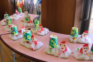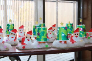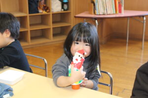 サンタさんの顔が細かかったのですが、子どもにやってもらう事で表情豊かなサンタさんが出来ました。