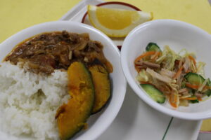 ハヤシライス・中華サラダ・ベイクドかぼちゃ・河内晩柑
